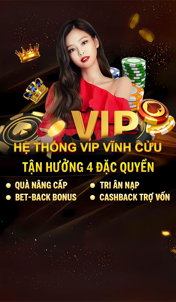 Nạp 500K+ nâng cấp VIP vĩnh cửu, tận hưởng bốn đặc quyền: Quà nâng cấp, Tri ân nạp, Bet-Back bonus, Cashback trợ vốn